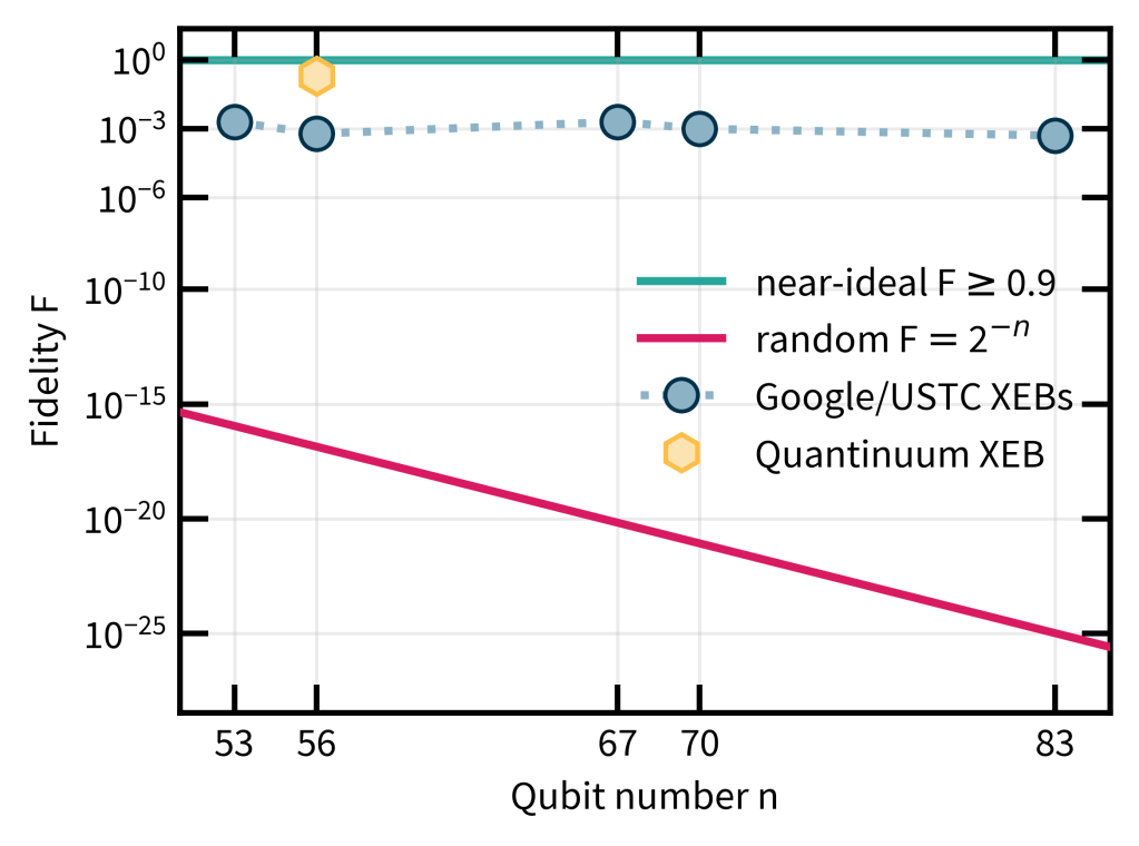 Remember from Part 1 that the experiments measured a quantity called the cross-entropy benchmark (XEB)