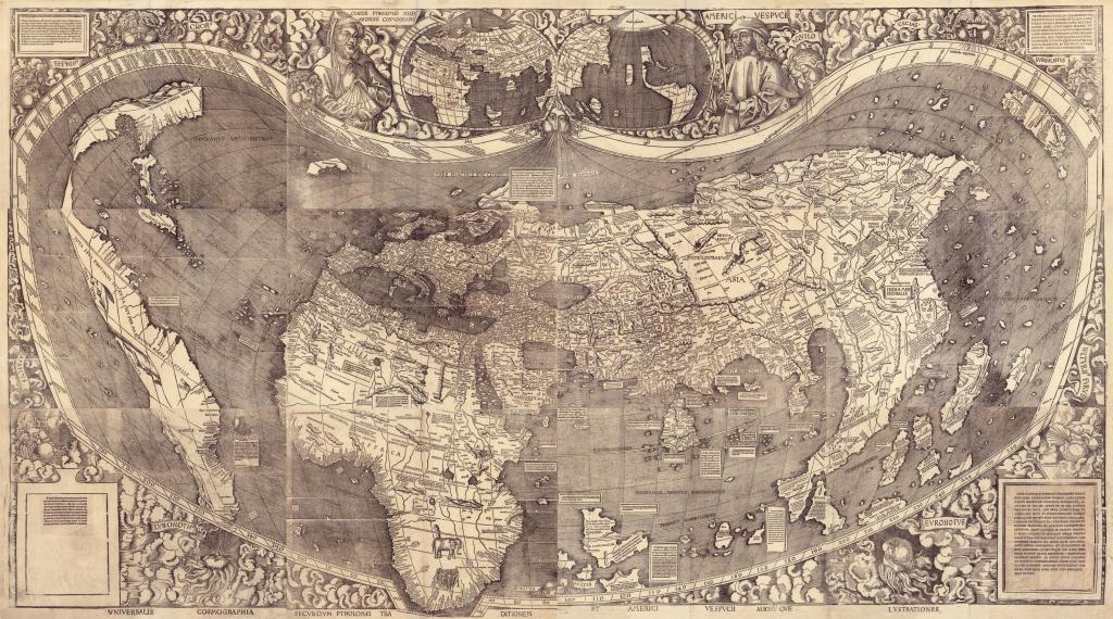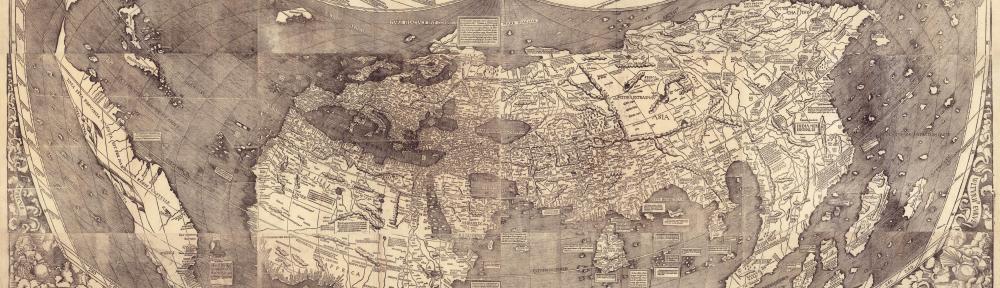My husband and I visited the Library of Congress on the final day of winter break this year. In a corner, we found a facsimile of a hand-drawn map: the world as viewed by sixteenth-century Europeans. North America looked like it had been dieting, having shed landmass relative to the bulk we knew. Australia didn’t appear. Yet the map’s aesthetics hit home: yellowed parchment, handwritten letters, and symbolism abounded. Never mind street view; I began hungering for an “antique” setting on Google maps.