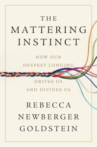 Jeremy’s dinner parties came to mind as I read the book The Mattering Instinct, published by Rebecca Newberger Goldstein this January. Rebecca is a philosopher of science and a writer. I had the good fortune to meet her through my undergraduate mentor Marcelo Gleiser, who’s had another cameo or two on Quantum Frontiers. Rebecca’s latest book covers what she calls the mattering instinct: the longing to know that we matter.